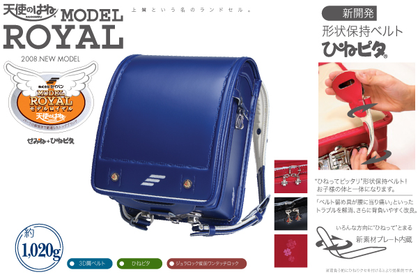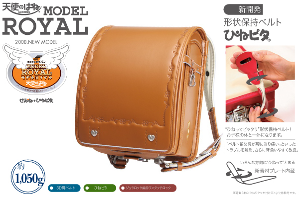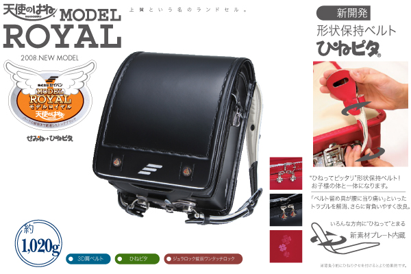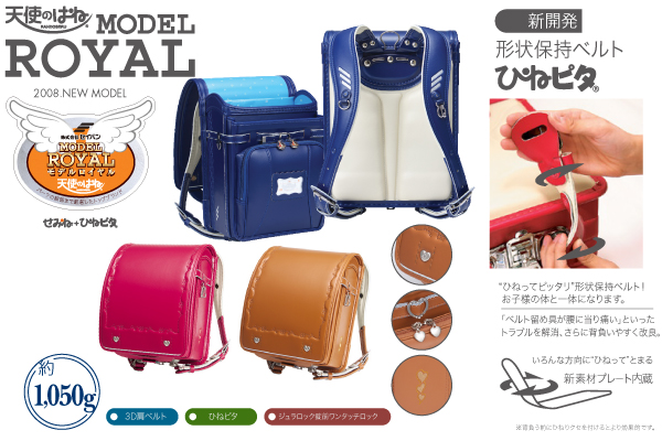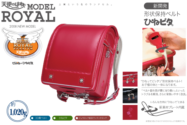 高級感、新機能、かわいらしさを兼ねそなえたランドセル。モデルロイヤルは、ランドセル本体素材はもちろんのこと、