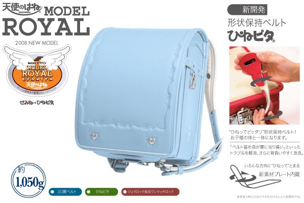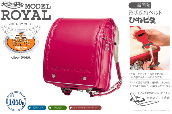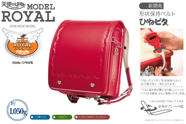 高級感、新機能、かわいらしさを兼ねそなえたランドセル。モデルロイヤルは、ランドセル本体素材はもちろんのこと、
